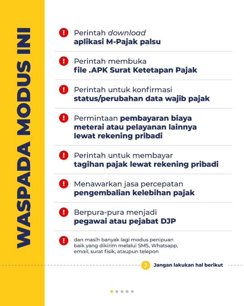 Melalui imbauan ini, DJP berharap masyarakat semakin waspada, kritis, dan tidak ragu melakukan verifikasi melalui saluran resmi, sehingga terhindar dari berbagai bentuk penipuan yang merugikan.