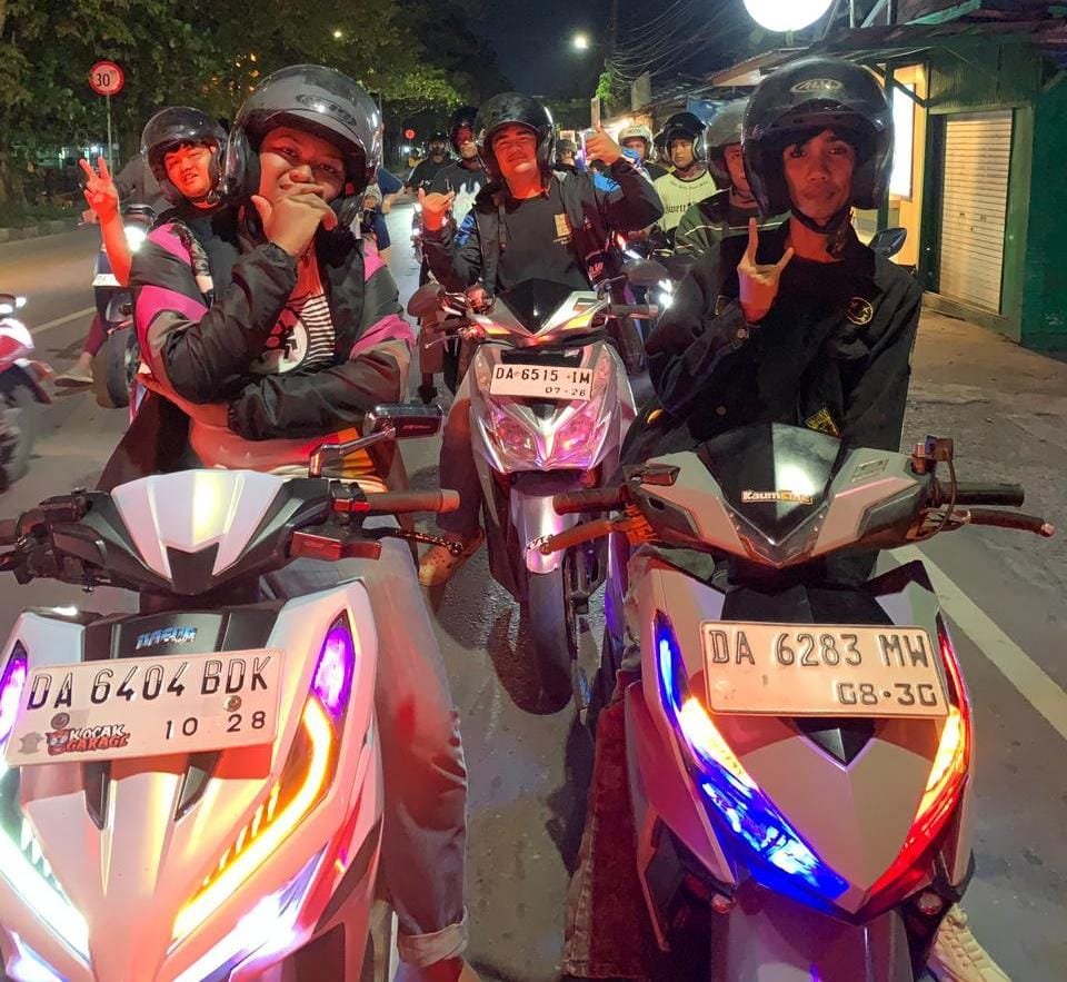 Mengambil titik kumpul di kawasan Duta Mall Banjarmasin dengan tujuan akhir di salah satu kafe di area Sultan Adam, kegiatan ini menghadirkan konsep city rolling yang santai namun tetap terorganisir. Para peserta tampil kompak dengan Honda Vario kebanggaan masing-masing, memperlihatkan karakter skutik sporty yang selaras dengan gaya hidup urban.